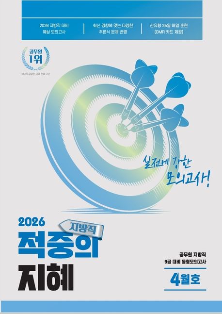 소개: 2026 공무원 지방직 대비 모의고사 『적중의 지혜』 4월호 - 수험 공부의 마지막 단계에서 가장 중요한 것은 실전 감각을 완성하는 것입니다. 아무리 많은 이론을 알고 있어도 시험장에서 문제를 정확하게 읽고 빠르게 판단하는 훈련이 되어 있지 않다면 원하는 결과를 얻기 어렵습니다. 『적중의 지혜』 4월호는 바로 그 실전 감각을 기르기 위한 동형 모의고사입니다.- 『적중의 지혜』를 12월부터 매달 출간하며, 실제 시험과 유사한 문제 구조와 난도를 유지하면서도, 여러분들이 다양한 상황에 대응할 수 있도록 문제 유형을 폭넓게 구성하려 노력했습니다. 단순한 문제 풀이를 넘어 시험장에서 요구되는 판단력과 속도를 동시에 훈련하도록 설계한 것이 이 교재의 핵심 목표입니다.- 특히 이번 2026년 4월호는 지방직 시험 대비에 초점을 맞춘 난도와 문제로, 25일 학습 일정으로 구성하였습니다. 하루 한 회차씩 꾸준히 풀어 나가면 시험 직전까지 실전 감각을 유지할 수 있습니다. 실제 시험과 동일한 흐름으로 문제를 풀고, 스스로 사고 과정을 점검하면서 실전 적응력을 높이시길 바랍니다.- 이번 교재에서는 최고의 출제진과 함께 논리 추론 문제의 다양성에 특히 많은 노력을 기울였습니다. 최근 공무원 국어 시험은 단순 지식 확인형 문제보다 조건 판단, 명제 추론, 논리 구조 파악과 같은 사고력을 요구하는 문제가 증가하고 있습니다. 『적중의 지혜』는 이러한 출제 경향을 반영하여 다양한 형태의 논리 문제를 수록하였습니다. 이를 통해 어떤 방식의 추론 문제가 등장하더라도 당황하지 않고 해결할 수 있는 사고력을 기르도록 하였습니다. - 또한 추론력이 필요한 독해 문제 역시 지방직 기출 문제의 흐름을 바탕으로 구성하였습니다. 단순한 내용 확인을 넘어 글의 논지 파악, 전개 구조 이해, 근거 판단 등 실제 시험에서 요구되는 독해 능력을 훈련할 수 있도록 난도와 주제를 다양하게 설계하였습니다. 이를 통해 수험생들이 시험장에서 낯선 지문을 만나더라도 논리적으로 접근하여 해결할 수 있도록 돕고자 합니다.- 마지막으로, 약점 체크표를 통해 나의 약점을 시각적으로 한눈에 확인하고 보완할 수 있도록 구성하였습니다. 문제만 푸는 것이 아닌, 나의 강점과 약점을 파악하며 훈련할 수 있습니다.- 『적중의 지혜』는 단순히 문제를 많이 풀기 위한 교재가 아닙니다. 실전에서 정답에 도달하는 사고 과정을 훈련하기 위한 교재입니다. 하루 한 회차씩 꾸준히 풀어 나가며 자신의 약점을 확인하고 보완한다면, 시험장에서 훨씬 안정된 판단으로 문제를 해결할 수 있을 것입니다.이 교재가 여러분의 마지막 실전 훈련이 되어 지방직 시험에서 원하는 결과로 이어지길 바랍니다.- 수험생 여러분의 합격을 진심으로, 항상, 응원하고 있습니다.